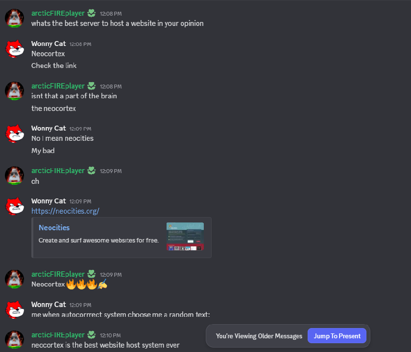 The autocorrect system in my iPad accidentally retype Neocities as Neocortex lol and arcticfireplayer2006 call Neocities Neocortex.